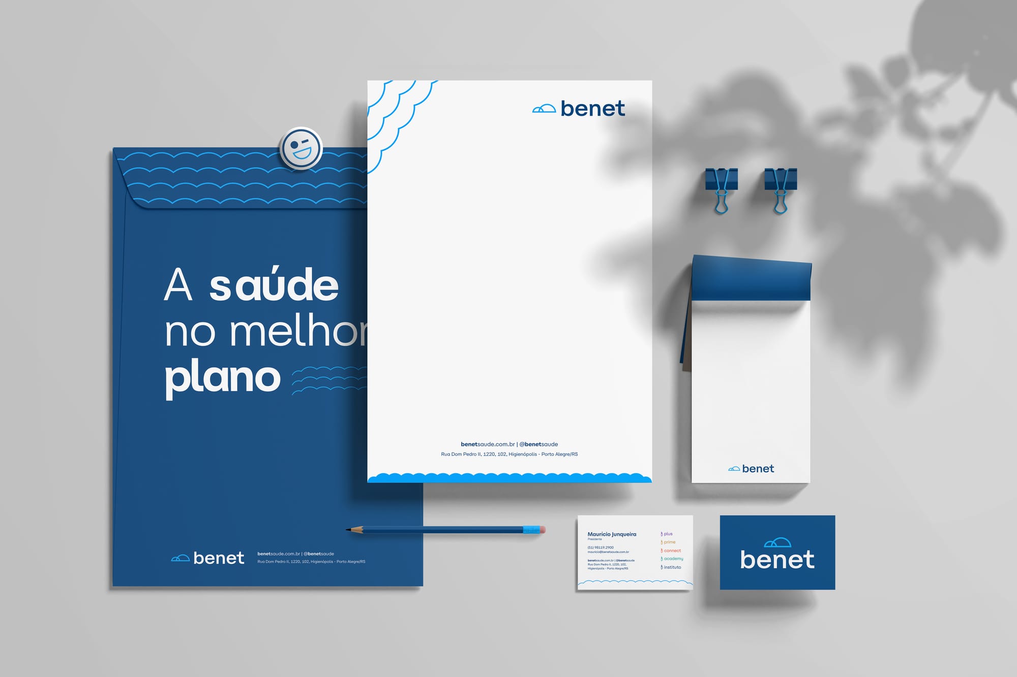 O rebranding da Benet foi um projeto especial que tivemos a alegria de assinar. A Benet Saúde se dedica a descomplicar a gestão de planos de saúde, tornando-os viáveis e sustentáveis, e gerando valor para empresas, colaboradores e operadoras. Transformar uma empresa com mais de 30 anos de história foi um desafio significativo, mas também uma oportunidade única de modernizar sua identidade sem perder a essência que a consolidou no mercado.