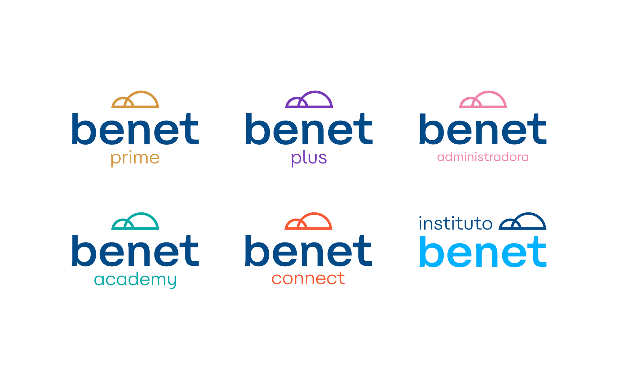 A arquitetura da marca da Benet também passou por uma importante evolução. Com o rebranding, a estrutura da marca foi organizada de maneira mais clara, introduzindo novas submarcas dentro de um sistema monolítico. Essa reorganização ajudou a Benet a se posicionar de forma mais assertiva, permitindo também que as equipes internas se dividissem de maneira mais produtiva e especializada, otimizando suas funções e aumentando a eficiência.