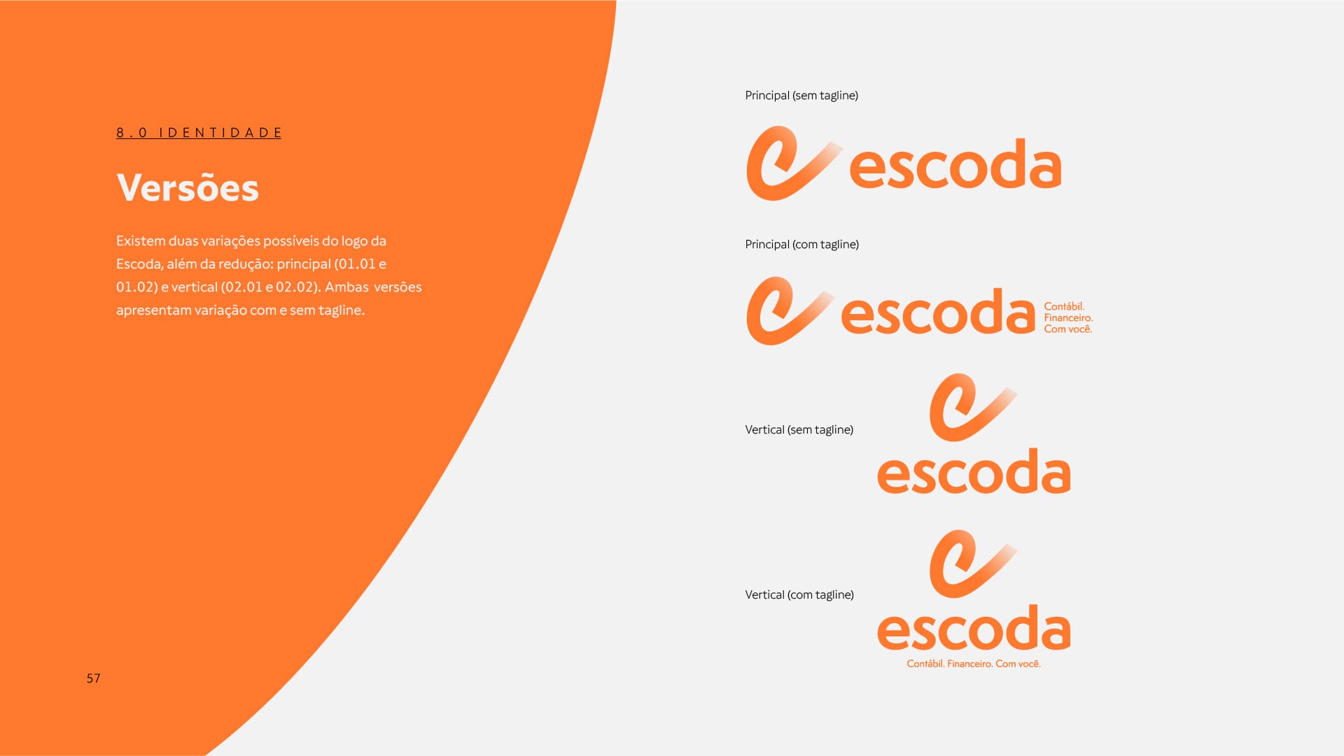 A identidade visual precisava materializar a estratégia. O ícone criado para a Escoda combina dois significados centrais: um “e” gestual e um check que simboliza segurança, clareza e resolução.