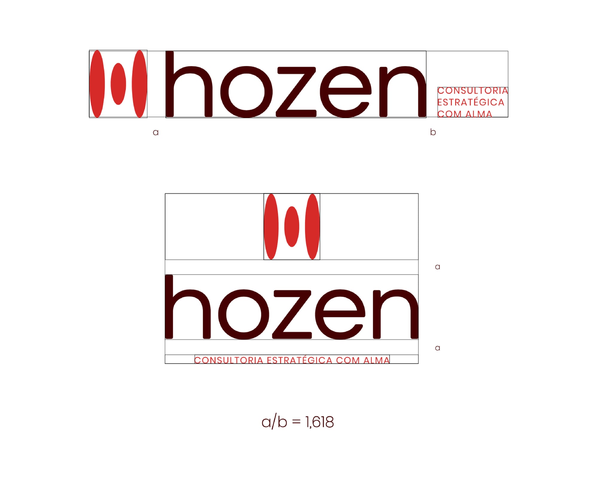 Elas são mais fluidas, contínuas e intencionais, evocando a maneira como a Hozen se envolve, escuta e avança com movimento. O símbolo central representa a letra “H” e reúne vários significados: