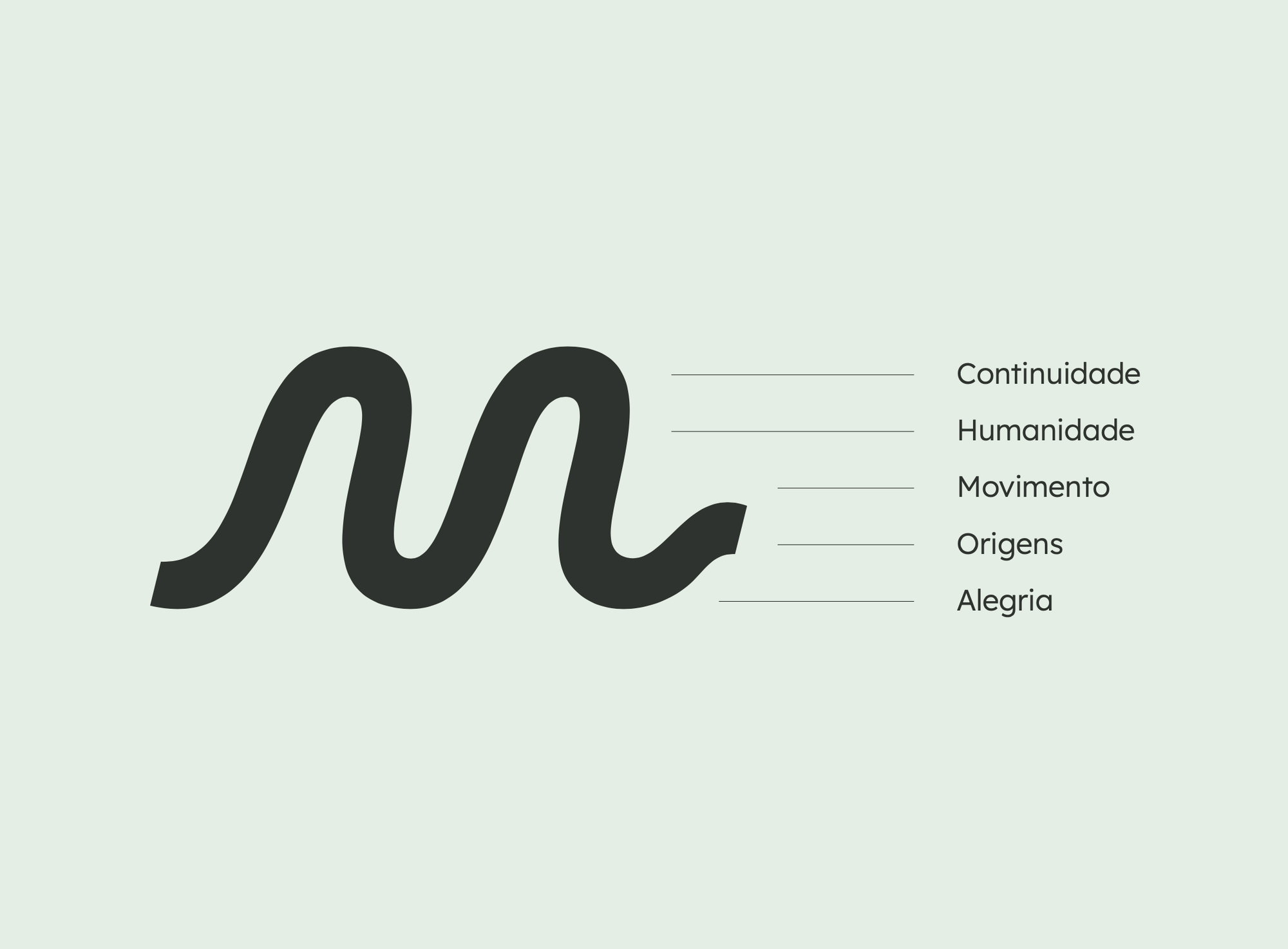Na nova identidade, escolhemos ressignificar a ideia de continuidade. Em vez de repetir o símbolo, reinterpretamos o que ele significa: um processo que se renova a cada etapa, um fluxo vivo, que não se fecha, mas se reinventa. Mais do que um traço, é uma maneira de pensar.
