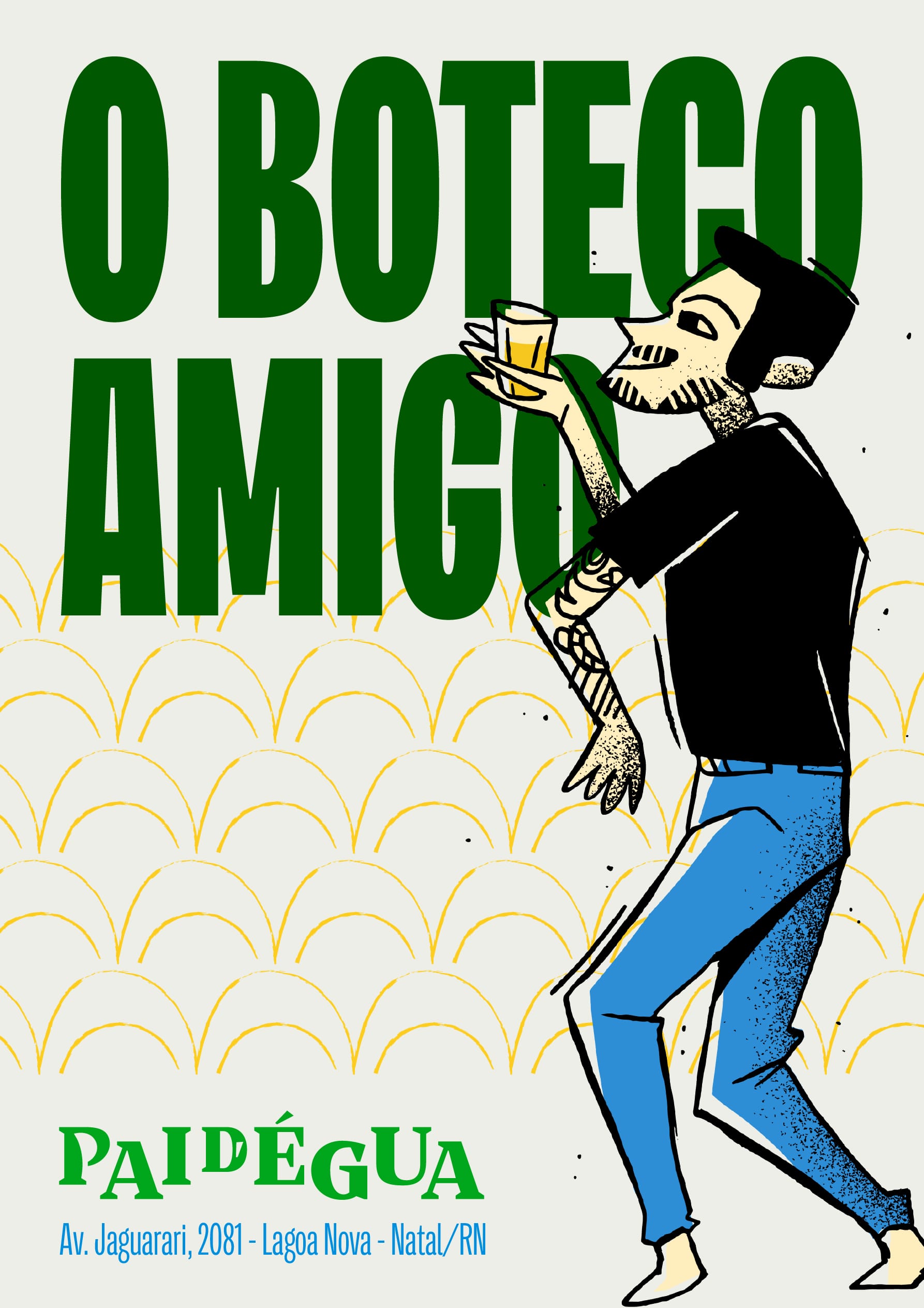 No coração quente de Natal, o Pai D’Égua já era mais que um boteco. Era ponto de encontro, abraço em forma de mesa, casa de quem procura comida boa, cerveja gelada e conversa solta. Faltava apenas descobrir isso e revelar uma identidade à altura dessa alma — e esse foi o desafio que nos lançaram. Nosso trabalho foi traduzir em imagem o caos organizado que, em meio às explorações, descobrimos ser o que faz do Pai D’Égua um dos lugares mais queridos da cidade.